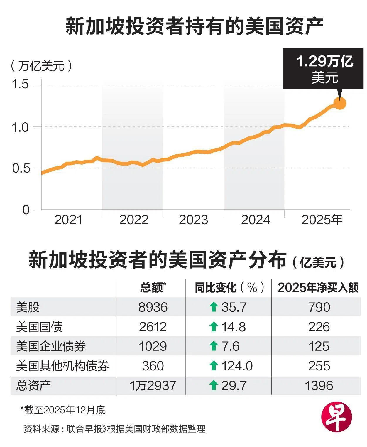 尽管去年刮起所谓的“抛售美国”风潮,新加坡投资者一年净买入790亿美元(约1001亿新元)的美国股票,比2024年的703亿美元增加12.4%,是美股的第二大海外净买家群。