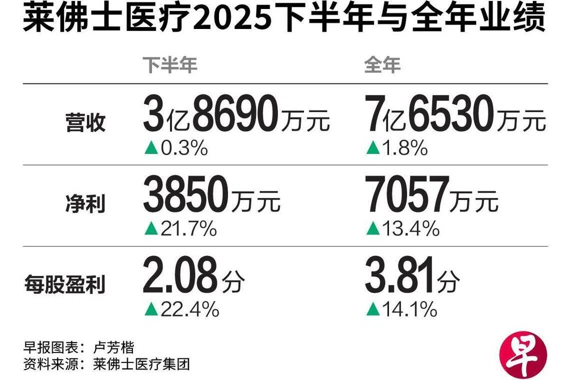 医院服务和保险业务收入良好,加上区域业务营收持续增长,莱佛士医疗集团(Raffles Medical Group)去年下半年净利增长21.7%。