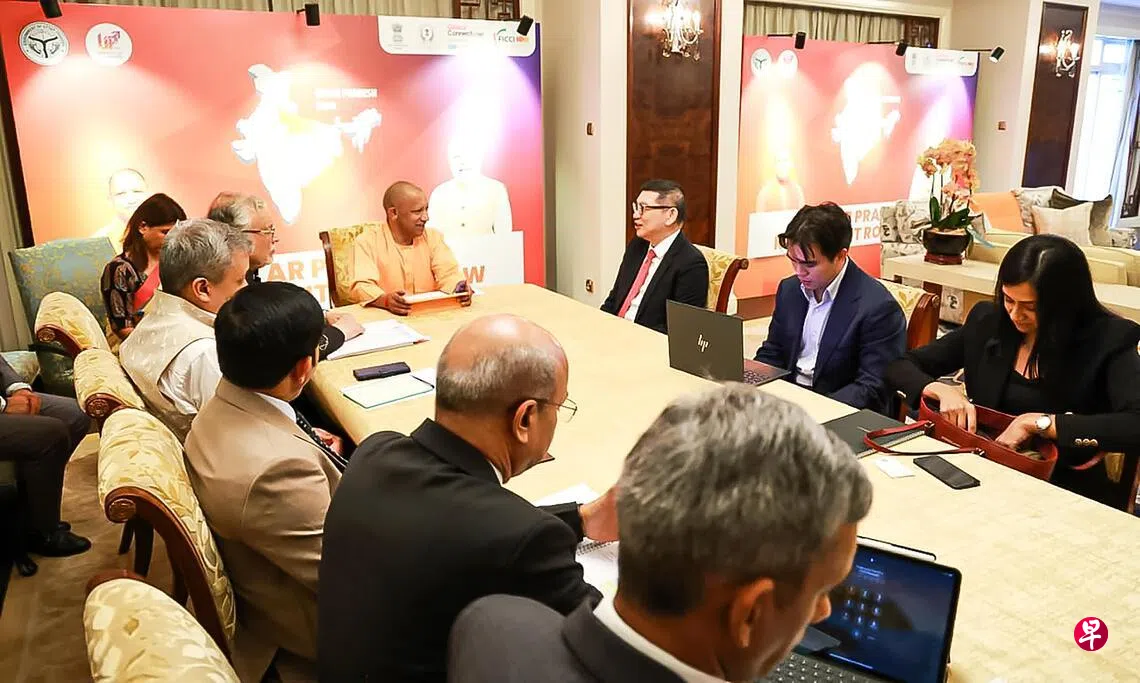 印度北方邦(Uttar Pradesh)首席部长尤吉·阿迪提亚纳(Yogi Adityanath)星期一(2月23日)访问新加坡期间,与新加坡政府投资公司(GIC)首席执行官林昭杰和团队会谈,讨论投资北方邦的可能。