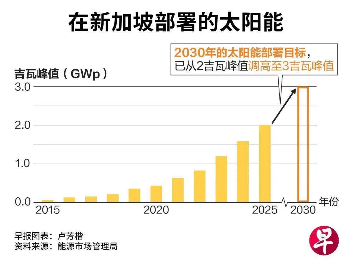 谈及太阳能的部署,陈诗龙说,新加坡已取得显著进展,我国已在去年提前达成原定在2030年要实现的2吉瓦峰值(GWp)太阳能部署目标。