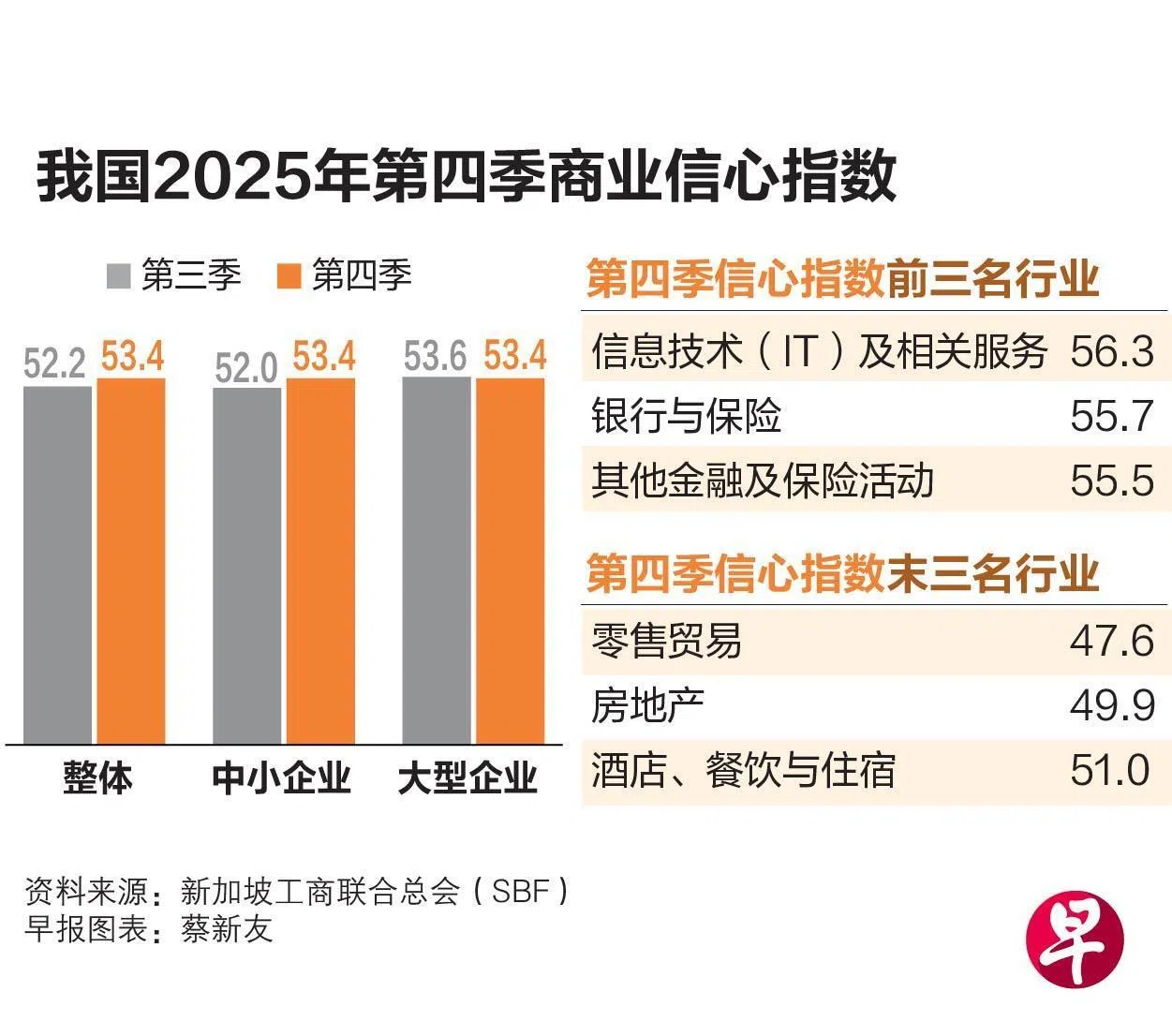 工商总会星期一(3月2日)发布最新调查显示,以企业信心指数(Business Sentiment Index)衡量的整体企业信心,从2025年第三季52.2,上升至53.4,重回“中性偏正面”区间,其中中小企业信心反弹最明显,上升1.2点。