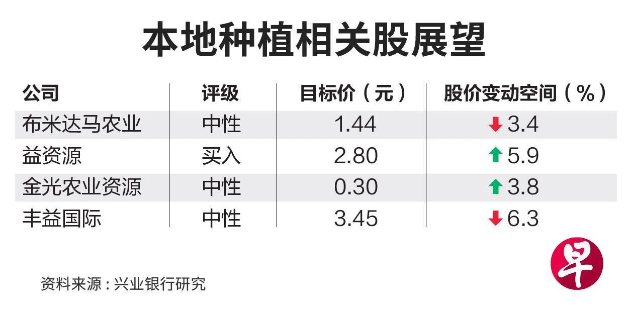 尽管如此,星展银行预计益资源和布米达马农业最有望受益于强劲的毛棕油价格上涨势头。银行上调益资源的目标价至3元。