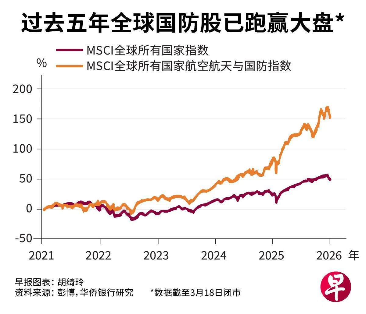 华侨银行研究最新发布的报告指出,俄乌战争以来,地缘政治风险持续扩大。即便当前中东冲突缓和,但全球秩序走向碎片化,各国出于安全需要,将继续提高国防开支,为国防企业订单增长、提升行业盈利提供支撑。