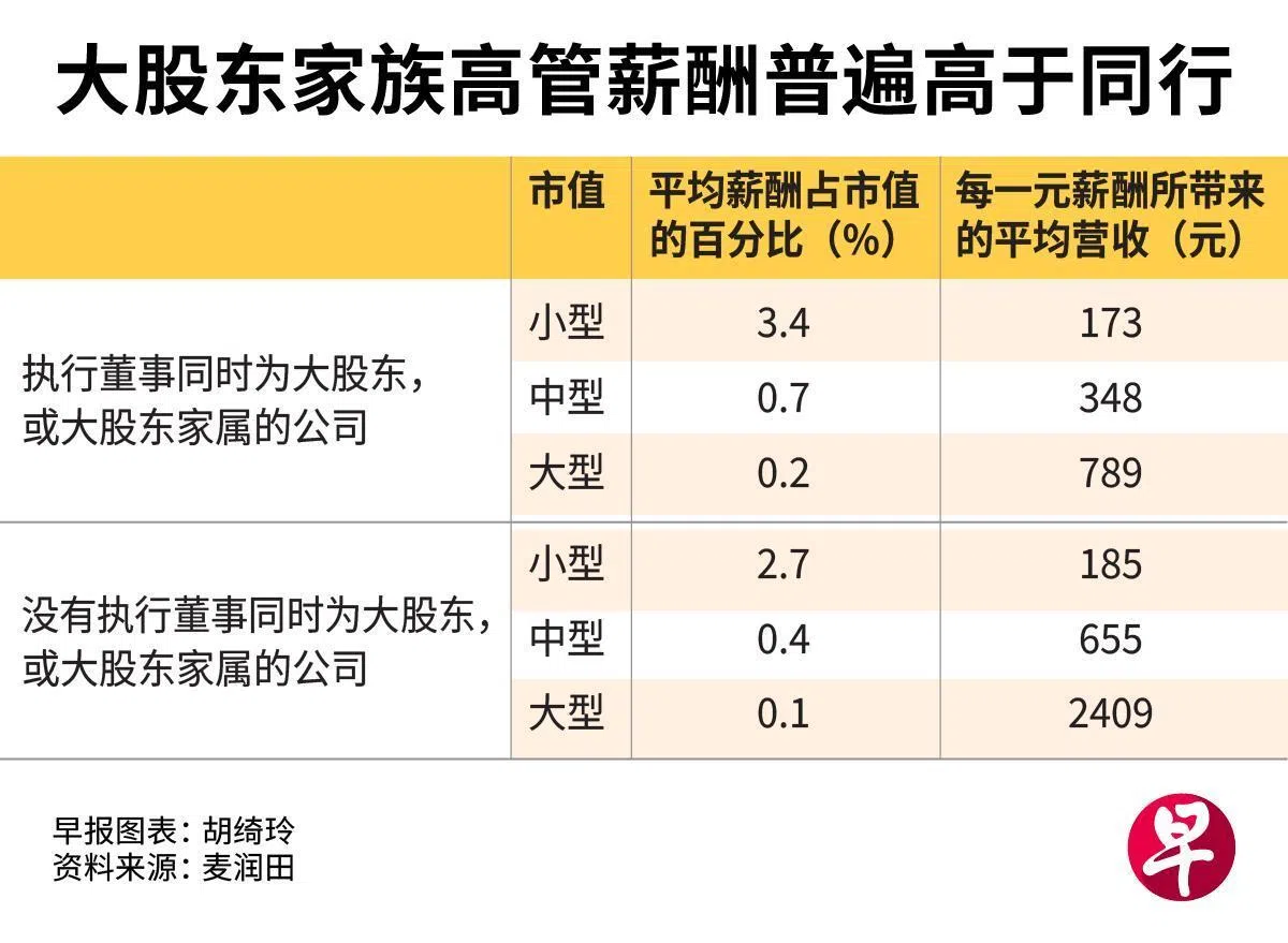 这些和大股东有关系的执董,平均薪酬占公司市值的比率明显偏高。换句话说,公司每一块钱市值里,他们的薪水占比特别大。