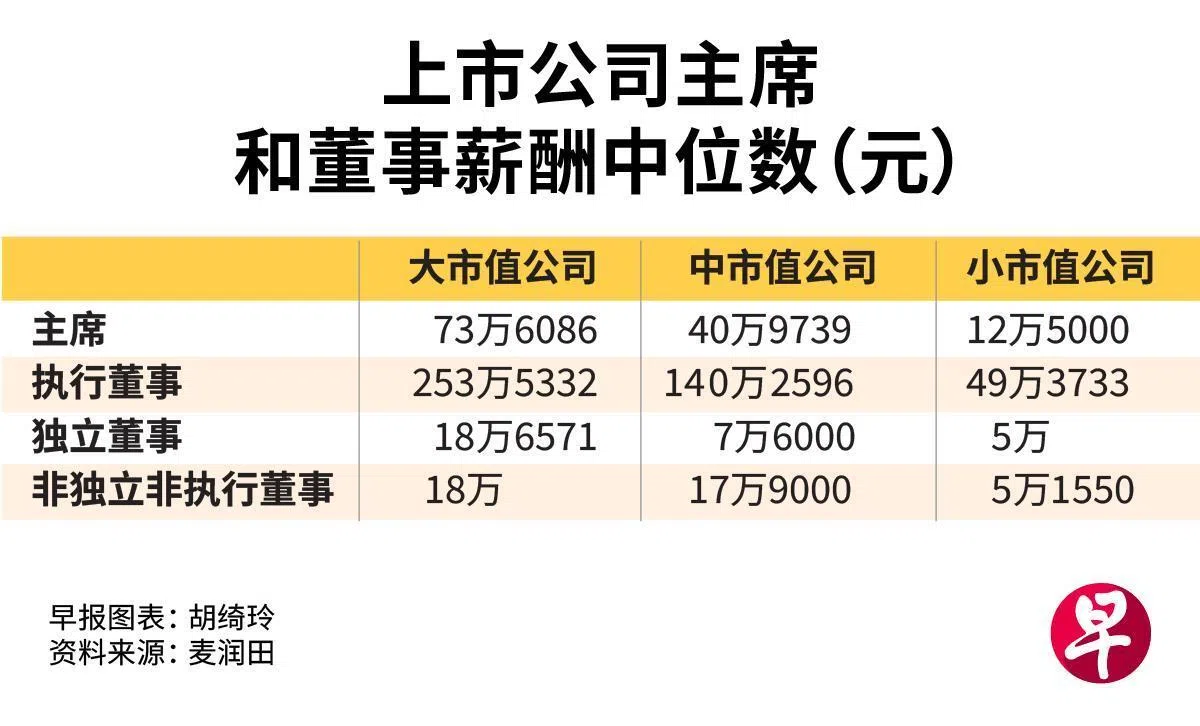 相比之下,不负责日常管理、更多扮演治理和战略角色的主席(Chairman),薪酬就低得多。他们的中位数薪酬,介于12万5000元至73万6086元间,视公司规模而定。