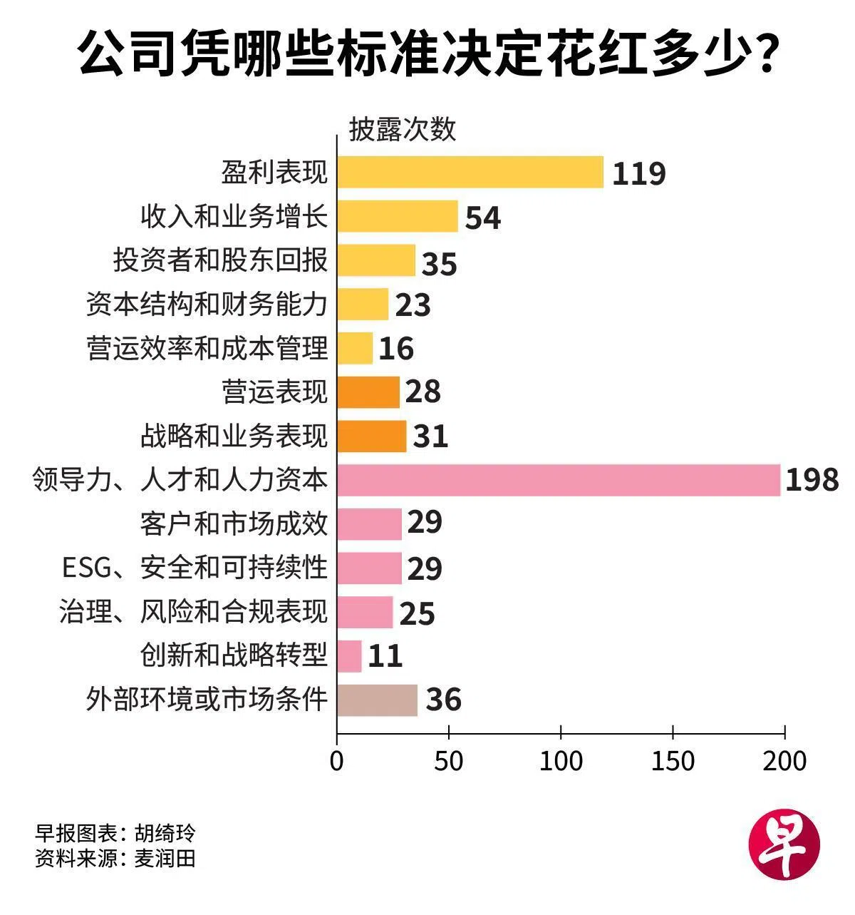 近几年,环境、社会与公司治理(ESG)议题越来越受关注,但在各年报中,这个指标影响董事和管理层花红的表述,只出现过29次,显然关注度还不够。
