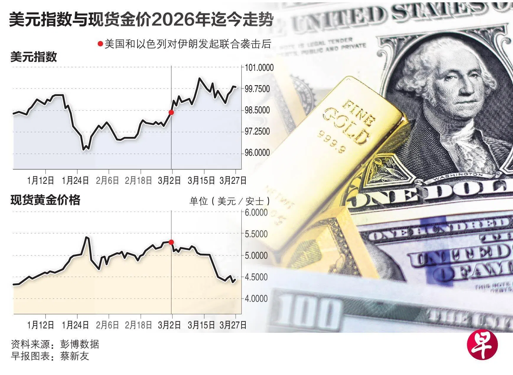 自美国和以色列对伊朗发起联合袭击以来,反映美元兑一篮子货币的美元指数波动走高,现货黄金价格却持续下行。