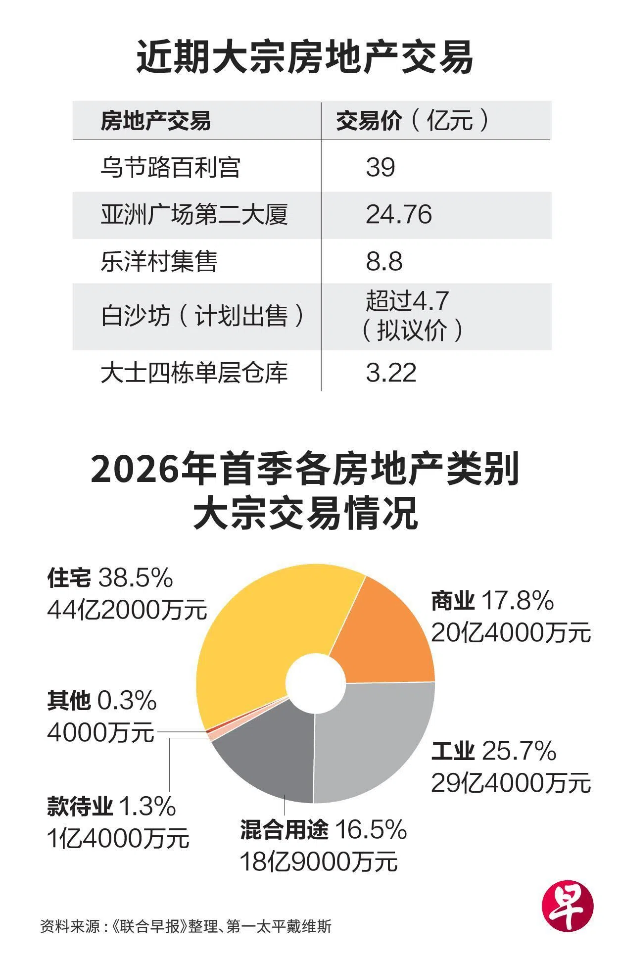 展望未来,第一太平戴维斯新加坡投资销售和资本市场董事经理雷科(Jeremy Lake)指出,市场接下来可能会出现更多介于3亿元至10亿元的交易。