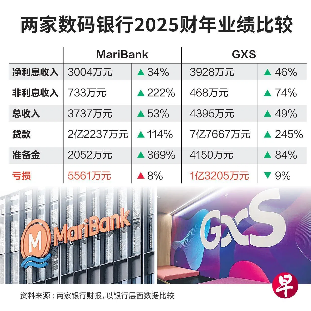 两家银行上财年依旧蒙受亏损。MariBank亏损增加8%至5561万元,GXS亏损缩小9%至1亿3205万元。