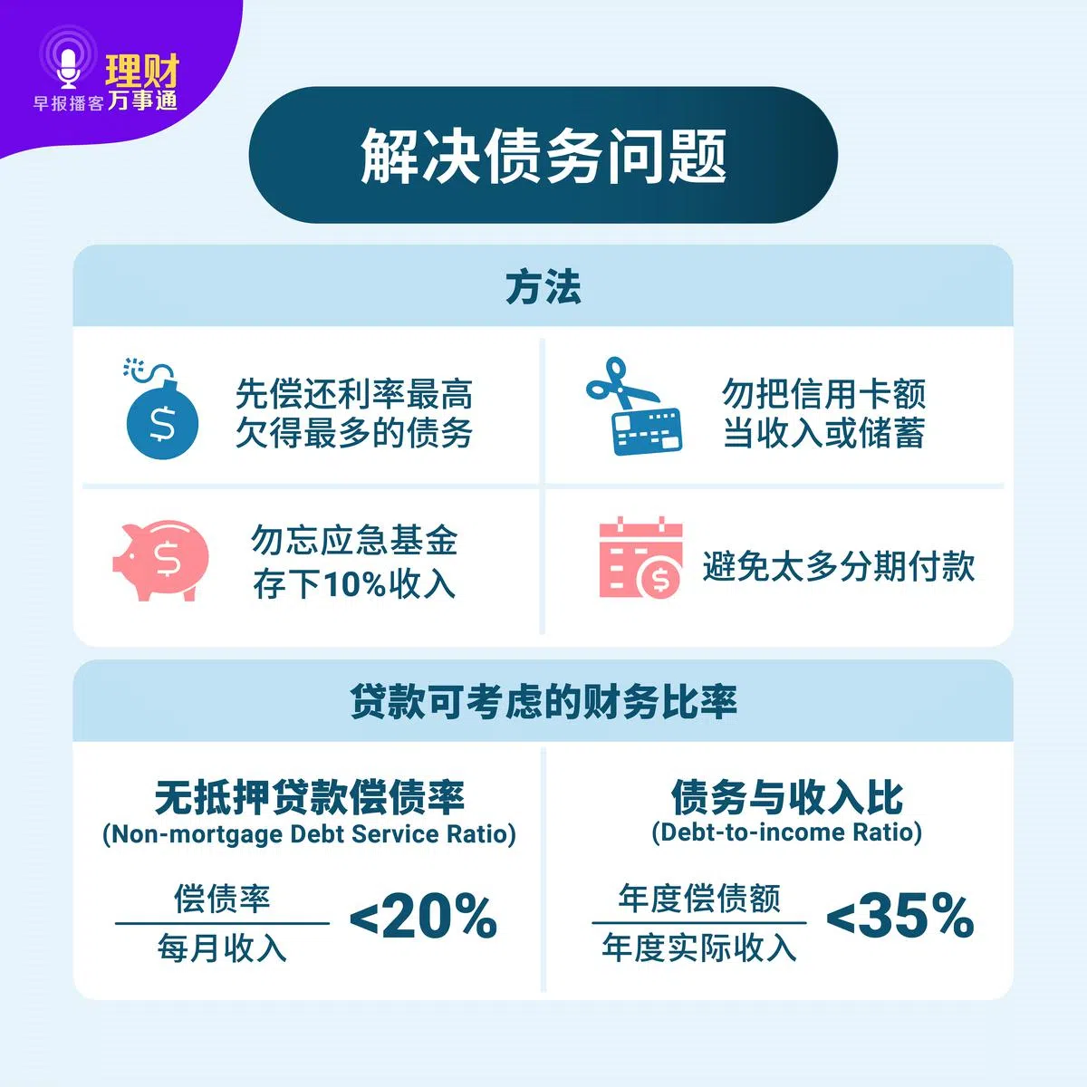 本期《理财万事通》邀请华文媒体集团《联合早报》财经新闻副主任郭书真,和我们谈一谈如何处理债务问题。