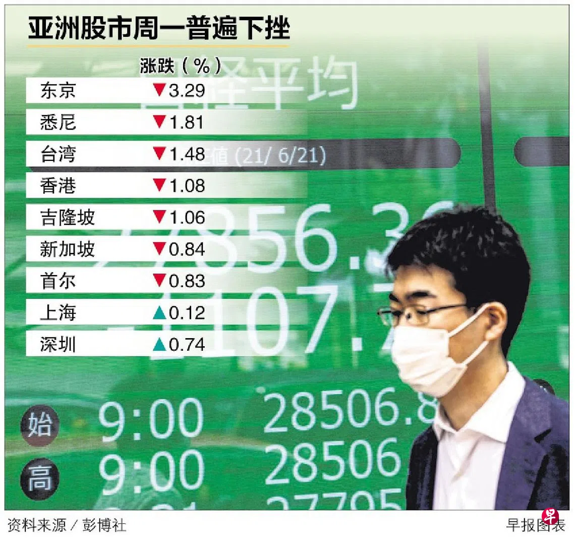 这番言论让投资者感到震荡,致使隔夜美股上周五(18日)大跌,区域股市在本周一跟进下挫。