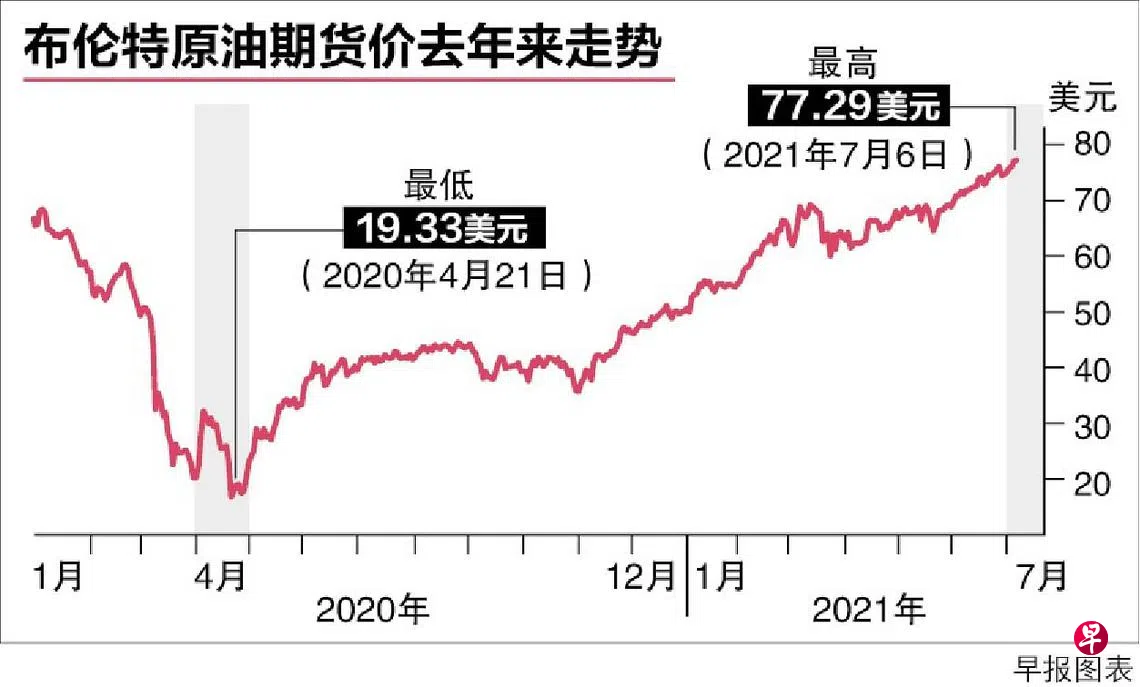 美国WTI原油期货一度涨2.3%至每桶76.98美元的价位,这是2014年11月以来的最高水平;布伦特原油期货则一度涨0.8%至每桶77.78美元,这是2018年10月来最高。市场原本预期下个月将有额外原油供应,油盟谈判的破裂摧毁了这个希望。