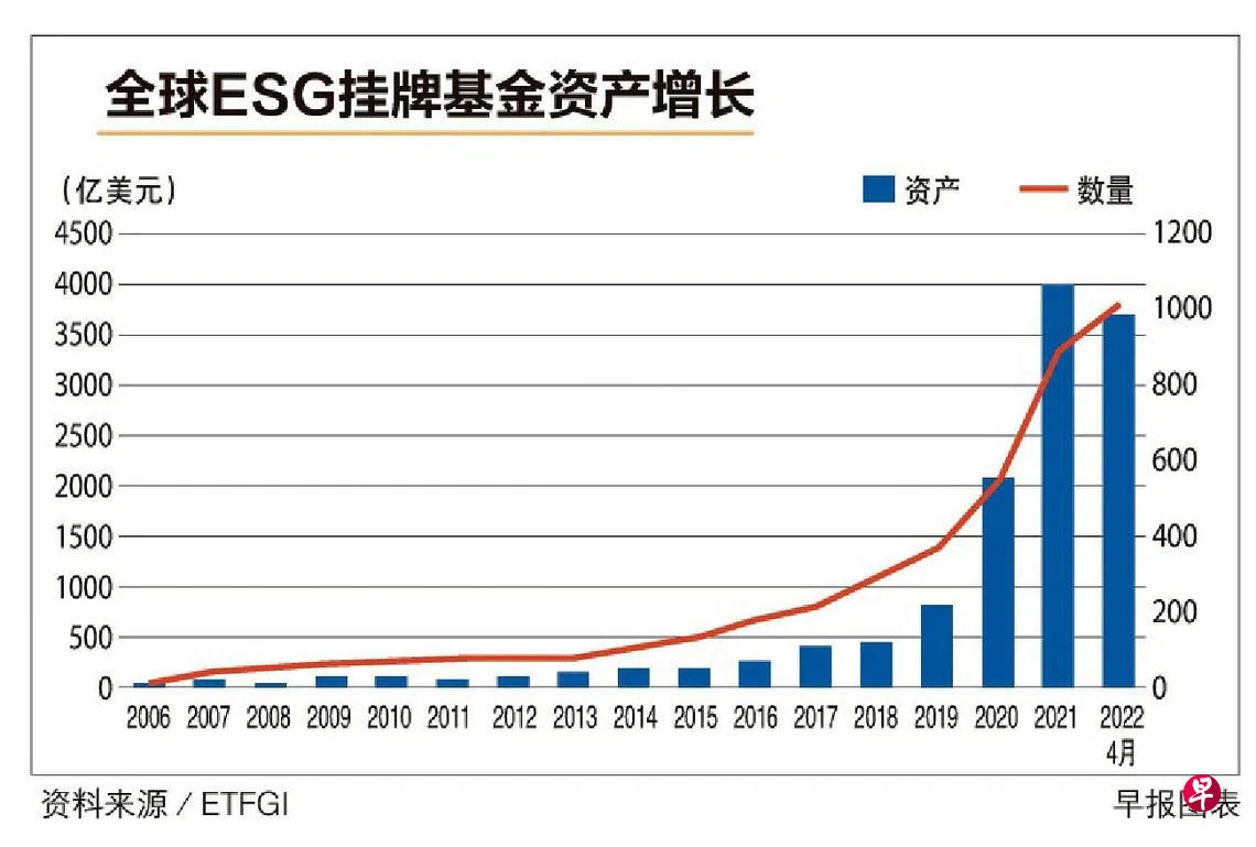 截至今年4月底,全球投资与ESG有关的挂牌基金总资产从去年底的3994亿6000万美元,减至3693亿1000万美元,今年来跌了7.5%。