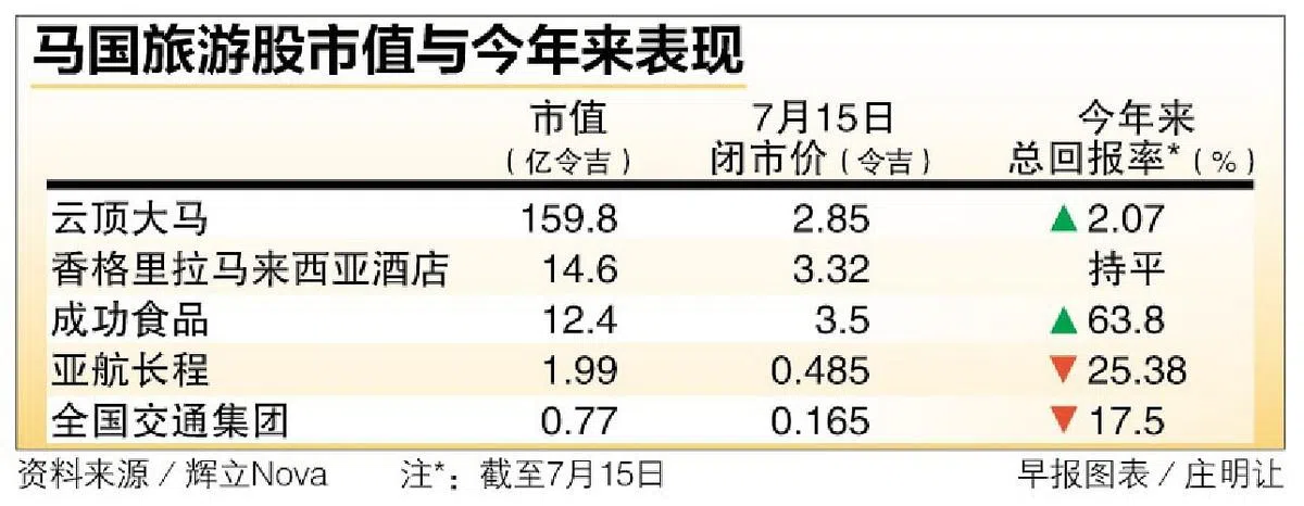 上述五只旅游股在4月1日至7月7日期间总回报率达8.22%,显著优于吉隆坡综合指数的负11.47%。