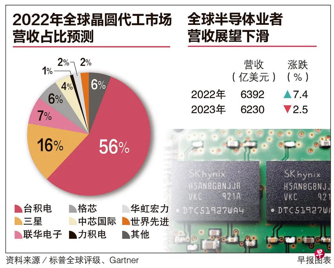 宏观经济前景近期疲弱,影响企业客户和消费者需求,全球半导体行业目前正面临下行风险,业者营收去年飙增26.3%后,今年料显著放缓,明年甚至可能萎缩。