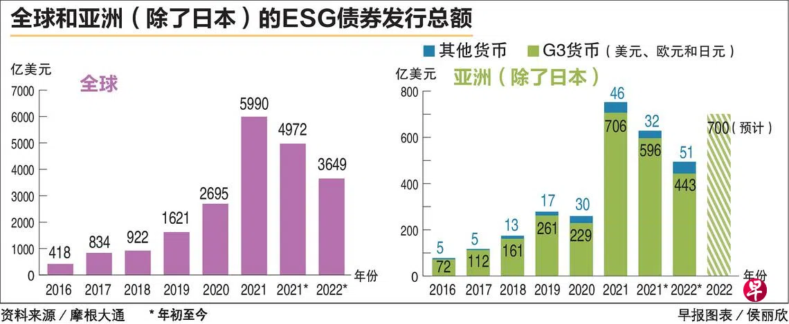 利率攀升,拖累全球债券发行量全年减少56%,但环境、社会与治理(ESG)债券的发行依然亮眼。以亚洲(除了日本)来说,全年发行估计达到700亿美元(约997亿新元),和去年持平。