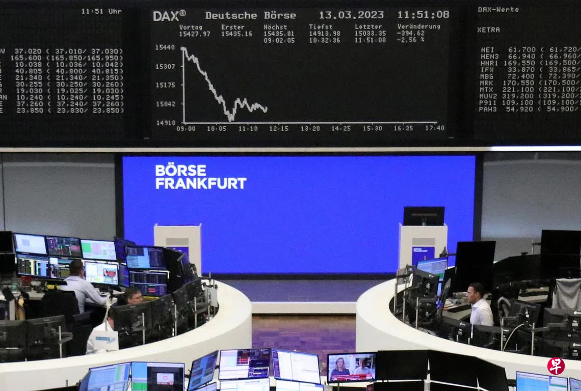 美国硅谷银行(SVB)因财务状况不佳引发存户担忧而挤兑后,于星期五(3月10日)宣布倒闭;两天后,纽约州金融监管机构“基于系统性风险”关闭标志银行(Signature Bank),加深人们对美国银行系统不稳定的担忧。美国西海岸的阿莱恩斯西部银行(Western Alliance Bancorp)、第一共和银行(First Republic Bank)、西太平洋合众银行(PacWest Bancorp)和嘉信理财(Charles Schwab),股价一开市分别大跌76%、67%、41%和19%,且多次跌停板。大银行包括摩根大通、摩根士丹利和美国银行的股价下跌2.8%至6.3%。