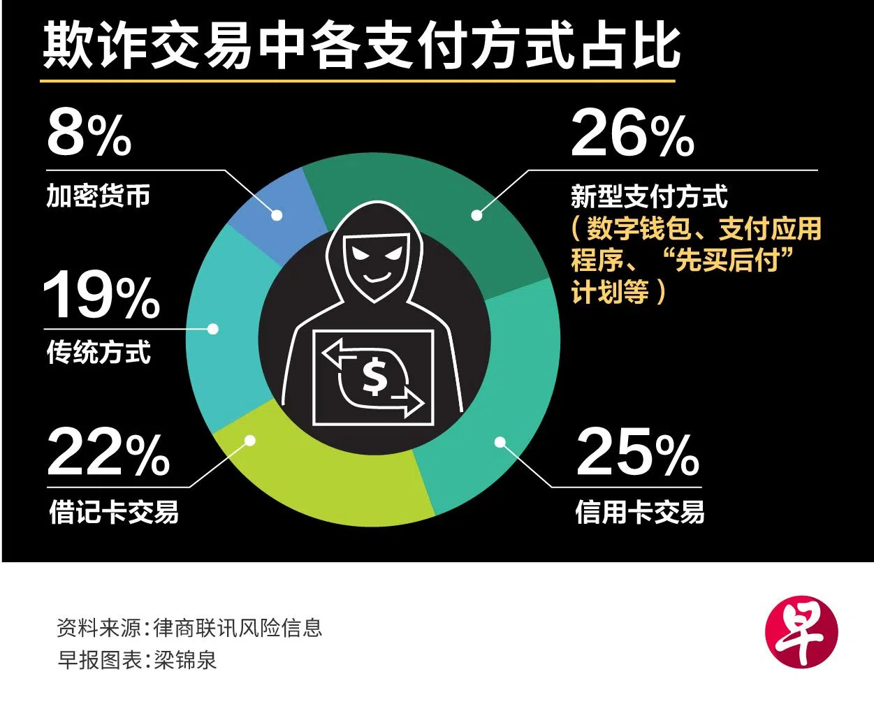 研究也发现,新型支付方式包括数码钱包、支付应用和 “先买后付”计划等,占欺诈交易的26%。信用卡和借记卡交易各占25%和22%。