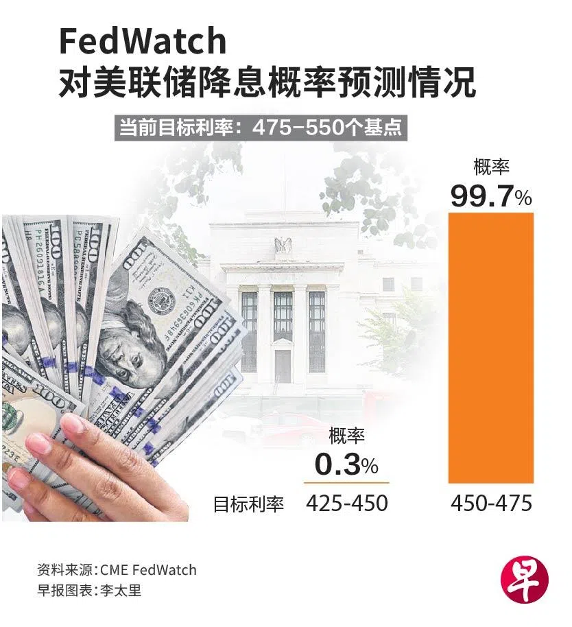 联昌银行(CIMB Singapore)首席投资办公室投资研究与咨询主任关恩全说:“市场原本预期美联储会在11月进一步降息50个基点,但在考虑到更强劲的就业和零售报告后,市场情绪已转向较为合理的25个基点降幅。