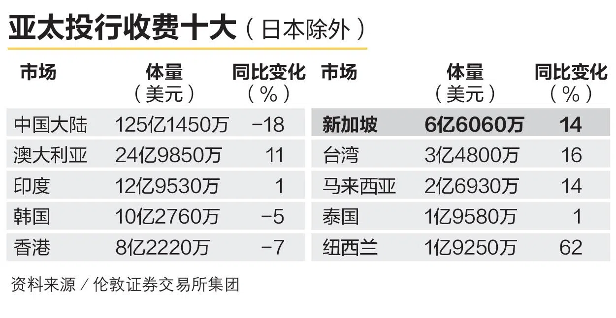 在股票和债务资本市场交易活跃的带动下,新加坡投资银行2024年征收到的费用,同比增加14%至6亿6060万美元(约9亿零400万新元)。这在日本以外的亚太区域市场排在第六位。