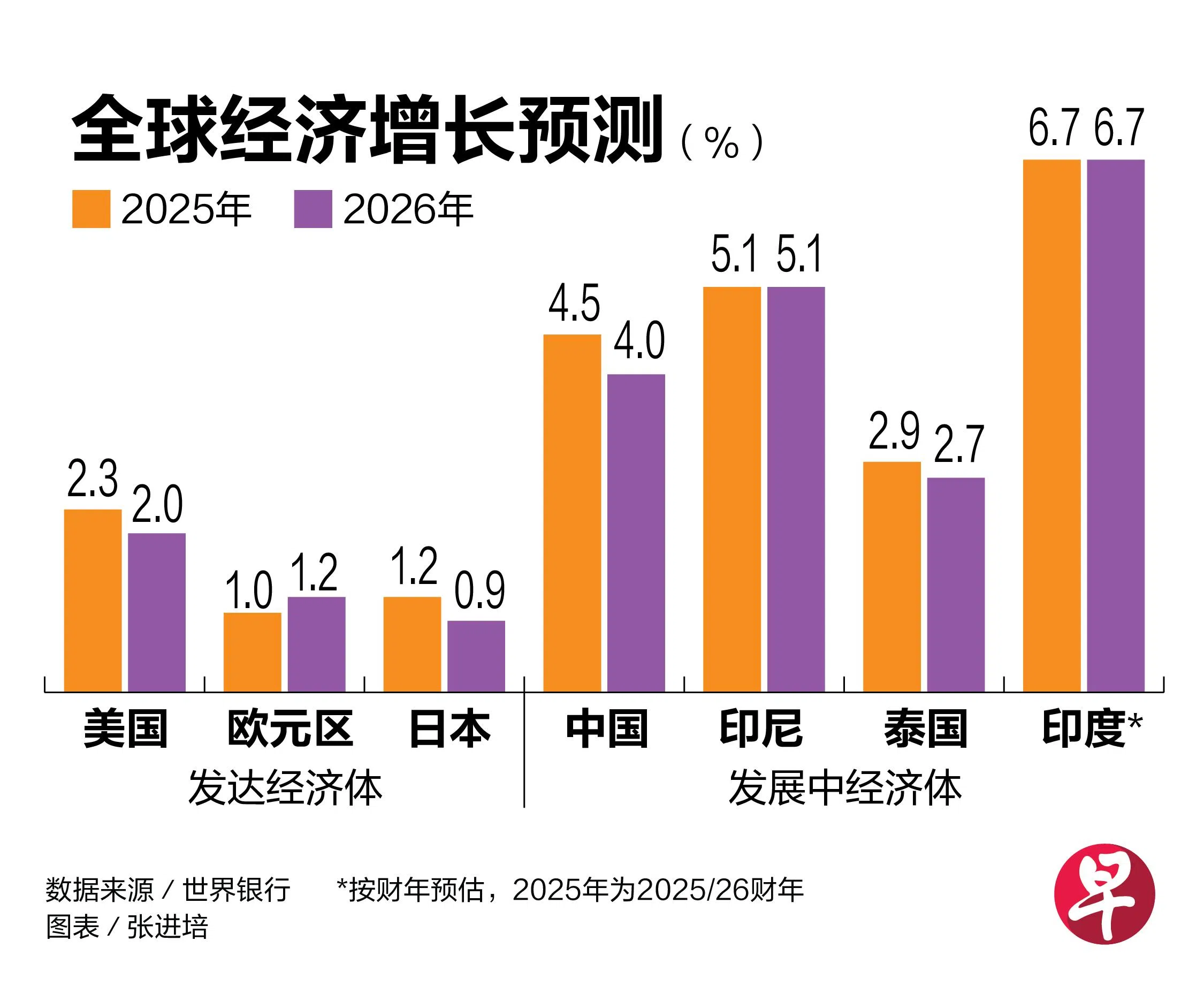 由于中国经济增长进一步放缓,世界银行预测,东亚与太平洋地区(East Asia and Pacific)今年和明年的经济增长分别放缓至4.6%和4.1%。如果不包括中国,东亚与太平洋地区的经济今年预计增长4.9%,明年增长4.7%。