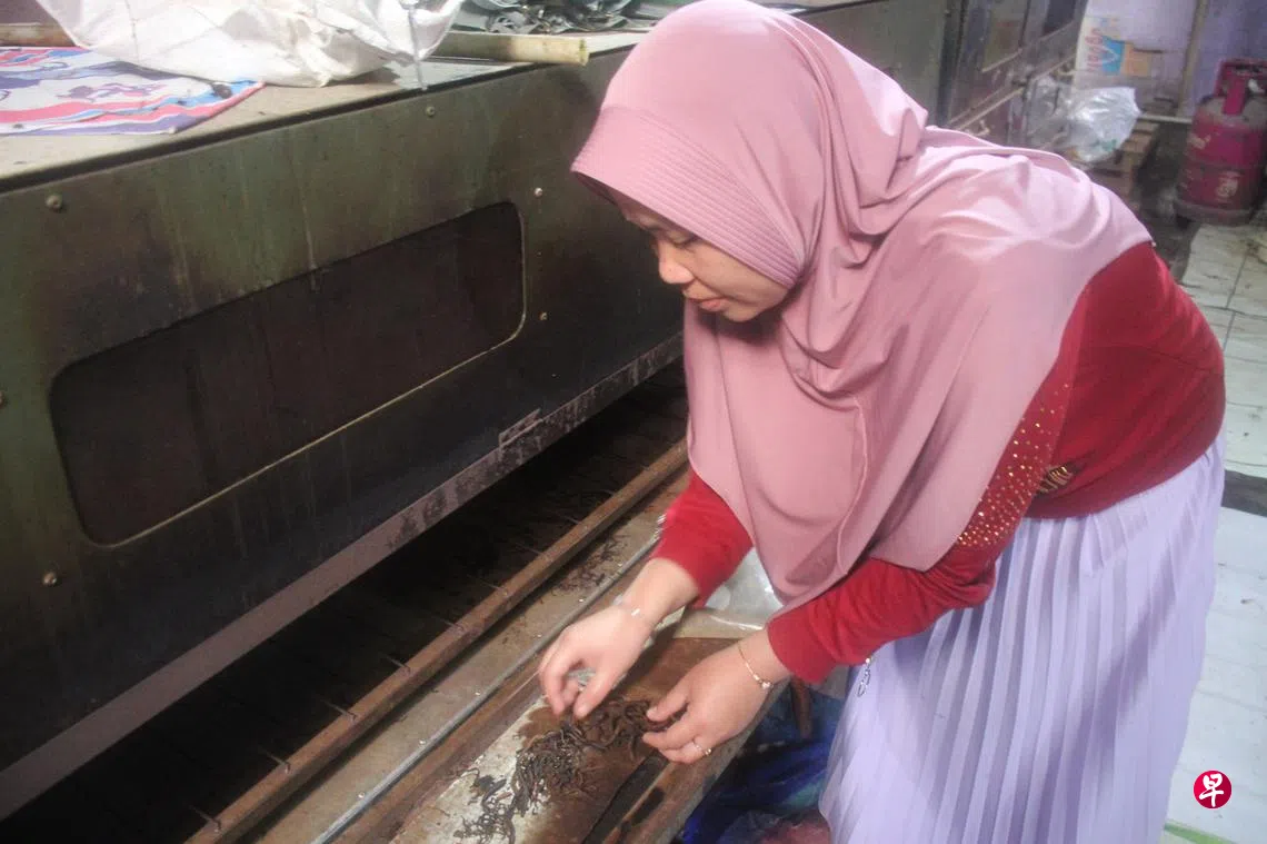 这些并不是烘焙原料,而是由干燥蚯蚓研磨而成的粉末。她将这些蚯蚓粉末供应给当地一家制药公司。在印度尼西亚的传统疗法中,这种粉末向来用于治疗伤寒。