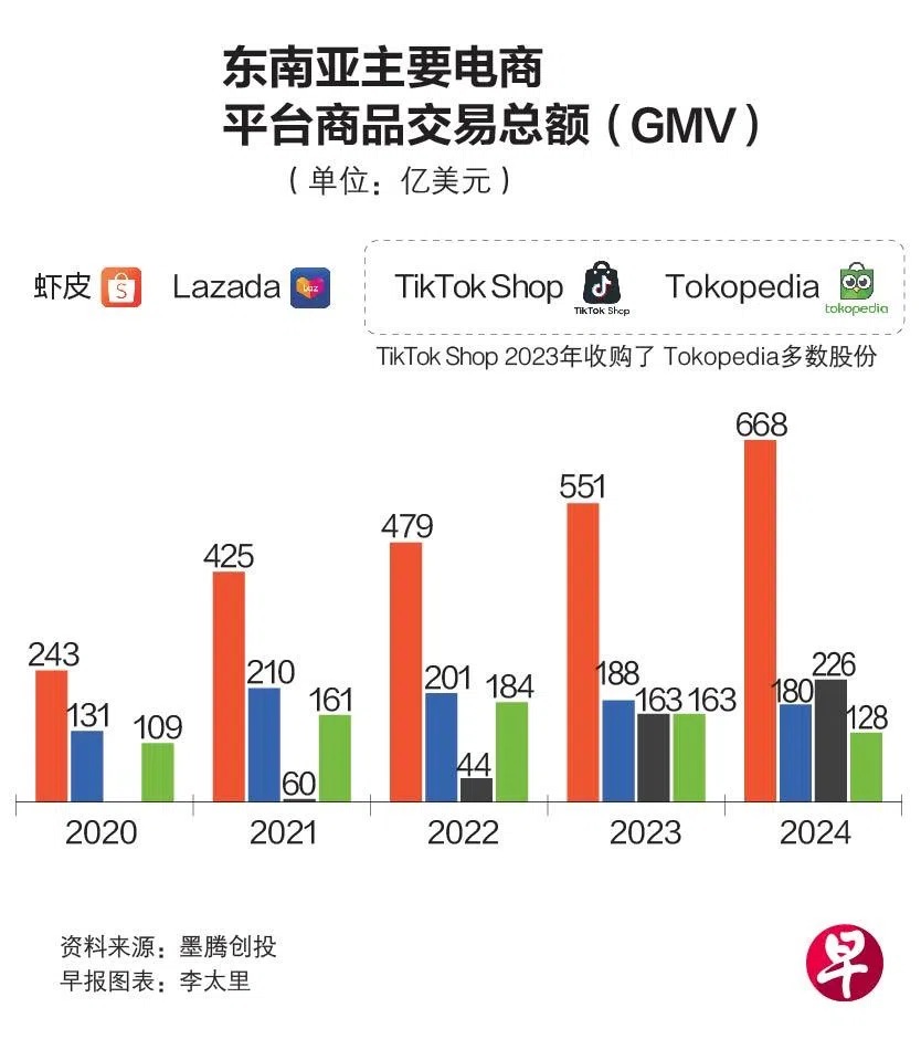 墨腾创投(Momentum Works)上星期三(6月25日)发布《东南亚电商报告 3.0》。据分析,虾皮(Shopee)、Lazada,以及TikTok Shop三大平台合计市占率达84%,可见区域市场进一步集中。