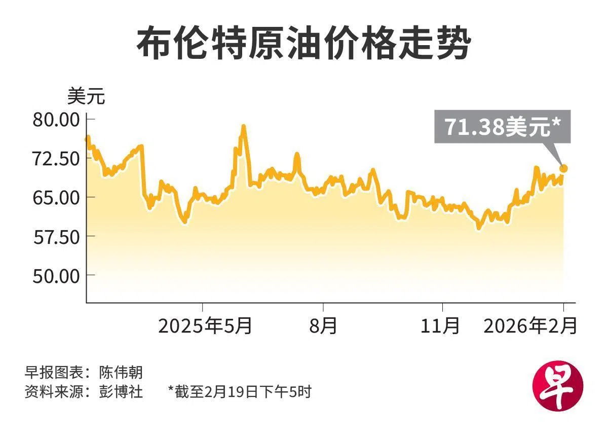 星期四(2月19日)布伦特油价升破每桶71美元,涨幅超过1%,而美国西得克萨斯中质原油(West Texas Intermediate)也上涨超过1.5%,达每桶66美元的水平。
