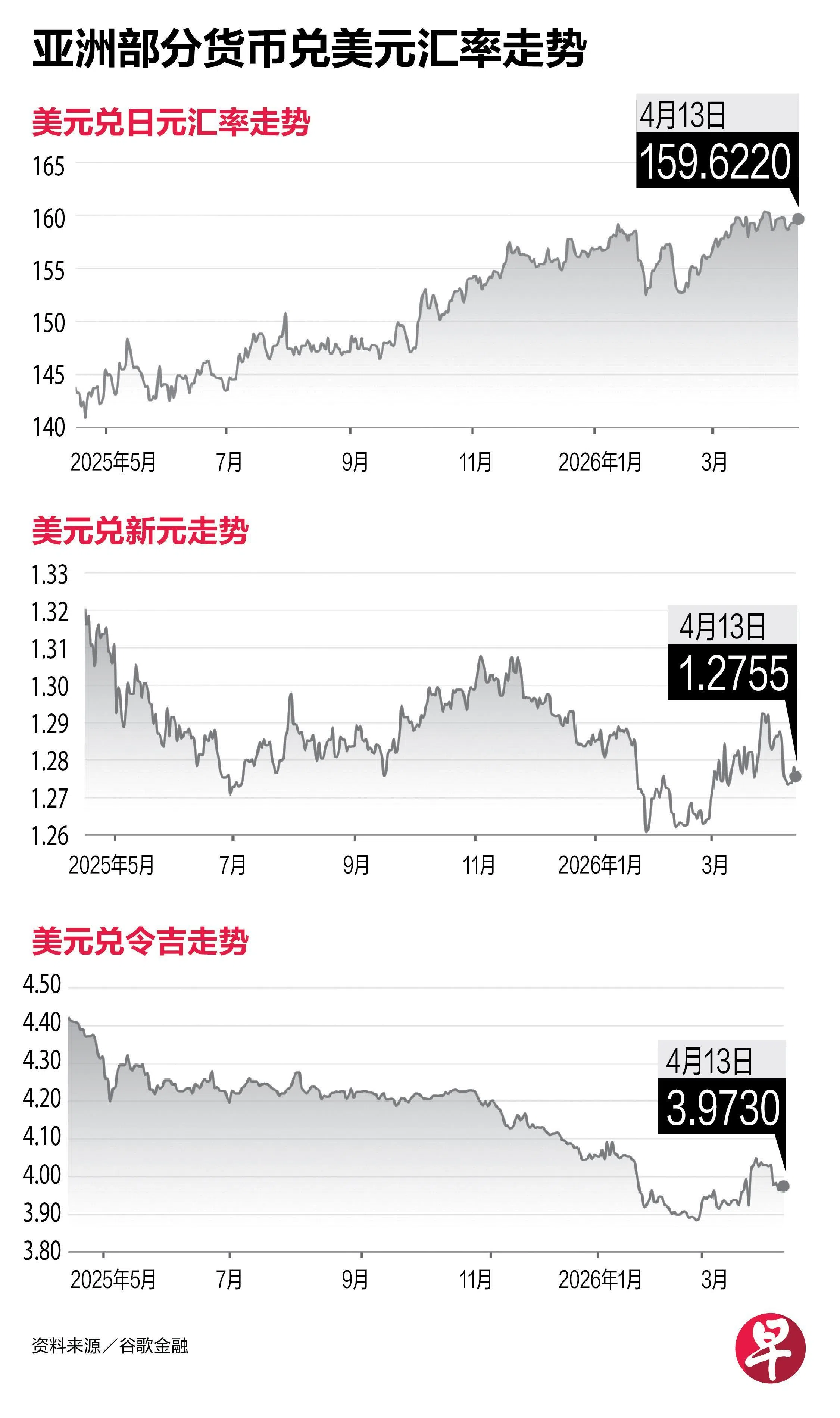 油价上升推动避险需求,美元指数上涨约0.3%,兑日元逼近160关口,也带动新元兑日元升至125.21的历史新高。