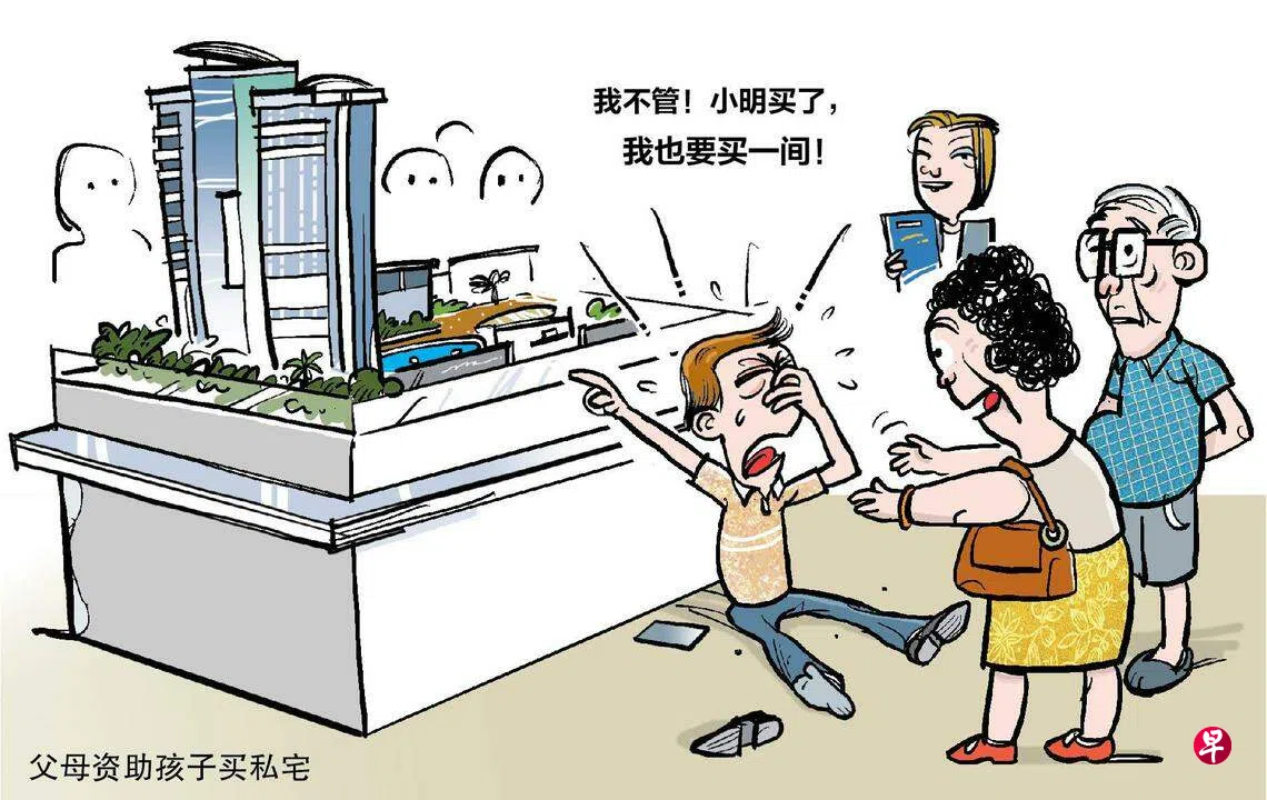 早报漫画有些刚买婚房的夫妇感叹“组屋那么贵,以后的人哪里买得起”,却有越来越多年轻人买新私宅,真是人比人,气死人。媒体突出的新闻点,有时并不具普遍性。像百万元组屋,2023年有470个单位转手,不到全年2万5878个转售组屋的2%。你若无视自家五房式的地点和屋龄,坚持非百万元不卖,还真得有姜太公钓鱼的闲情。买不起新私宅的年轻人,可能只是刚好缺了有闲钱的父母。没关系,乖啦,这大玩具咱改天再买。 想法版漫画百万组屋上一篇早报漫画下一篇早报漫画购买此文章