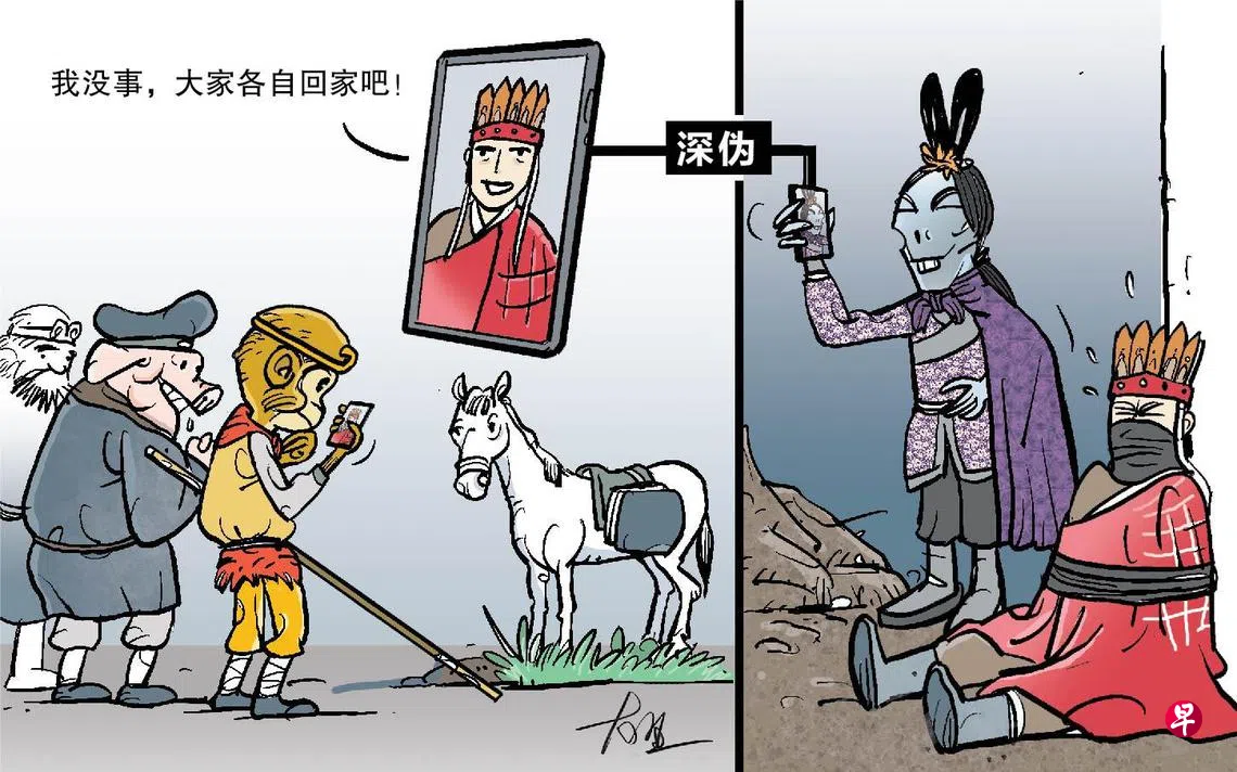 深伪已成妖精 火眼金睛难看透小时看《西游记》,见糊涂唐僧,一而再,再而三轻信白骨精化身的村姑、妇人、白发老公公,一面倒责怪护师心切的孙悟空,气愤焦急得直跺脚,心想妖精已如此明显,为何唐僧仍深信不疑?如今骗子借助科技,不必修炼千年,即可摇身一变,或成俊男美女、明星艺人,或成常年相伴的亲友,即时在屏幕上与你说话。大圣若在,还有把握识穿吗? 想法版漫画上一篇早报漫画下一篇早报漫画购买此文章