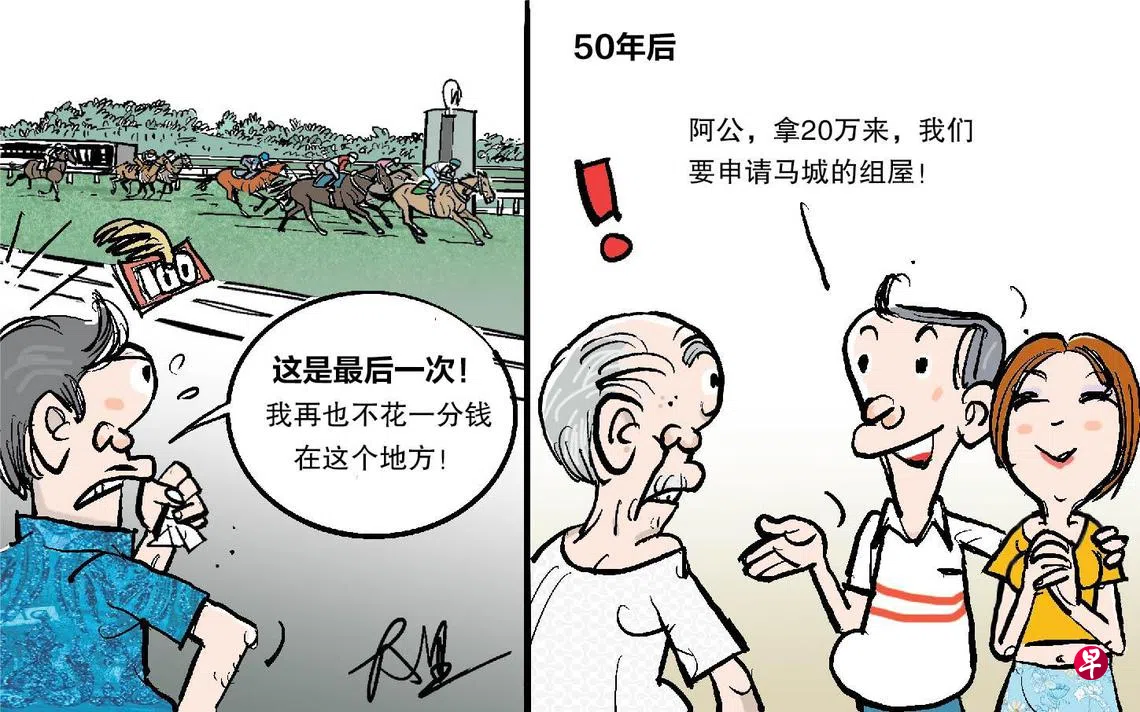 爷爷喜欢买独赢 我则看好它位置1933年到1999年,这里翻搅过多少喜怒哀乐,只有周边的老树知道。赛马,这种原先被英国人高雅包装的禽兽活动,到亚洲渐渐成了多巴胺竞赛。草地上跑的,策骑的,边上嘶喊的,尽显动物本性。当时就听说,可以在马场买到便宜的二手马赛地,就等押注身家性命的老板要现金翻本。达达的马蹄错误在这里并不美丽。哪天你搬来这里,到老树下坐坐,等风吹,叶子也许会告诉你。 想法版漫画上一篇早报漫画下一篇早报漫画购买此文章