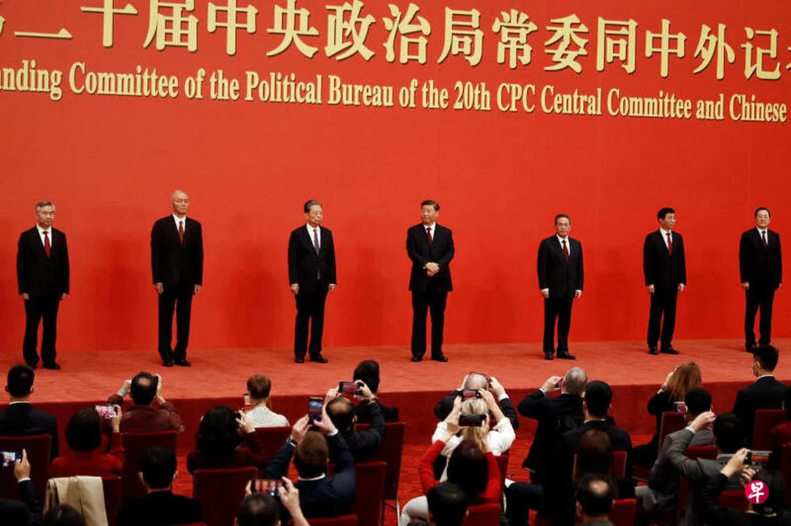 中国共产党总书记习近平在第二十次全国代表大会上进入了第三个任期,也在中央政治局和政治局常委会的人事安排上,打破了党内几十年的惯例和规则,亲习干部大举进入中共权力中心,使他的政治地位和权威获得全面巩固。习近平昨天在中共二十届一中全会后,向中外媒体介绍新一届政治局常委时,重申以中国式现代化全面推进中华民族伟大复兴。国际舆论分析,这意味着中共将不会在政治路线上跟西方有所妥协。