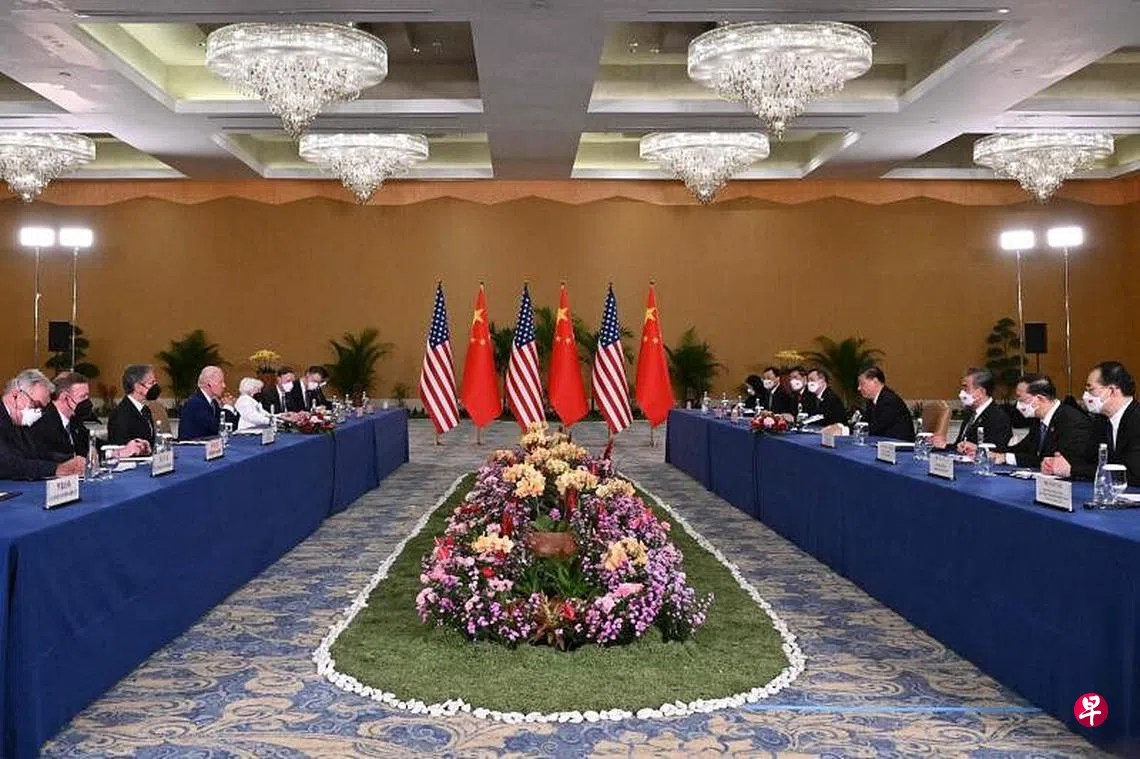 11月14日,美国总统拜登与中国国家主席习近平在峇厘岛举行双边会议,这是两国首脑任上的首次面对面会谈。美国方面指出,首脑会议是要让双方了解各自的红线,并为两国的关系建立护栏,避免误判的事件发生。