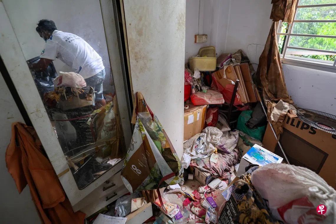 这个月所发生的两起案件,就具有一定的代表性。1月5日,文庆路第4座组屋一个单位,一名66岁的独居阿叔,因邻居闻到阵阵恶臭报警,才被发现早已死在屋内,屋内则堆满杂物,几乎无法通行,大门也被屋内的“垃圾山”阻挡,不能完全敞开。