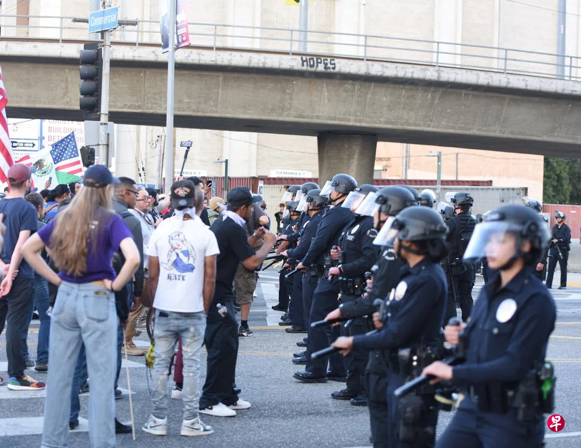 为进一步削弱对手的动员能力,特朗普政府把矛头指向协调在全国动员示威的非政府组织(NGO)。国土安全部部长诺姆6月12日透露,司法部正联合美国缉毒局和联邦调查局,追踪洛杉矶暴动组织者的资金来源;美国国税局也配合调查。特朗普一直指控民主党政府利用联邦拨款,给亲民主党的NGO推动党派议程;马斯克的政府效率部以减少浪费和制止腐败为由大力删减支出,目的之一正是要终止NGO的金流,瘫痪民主党动力。