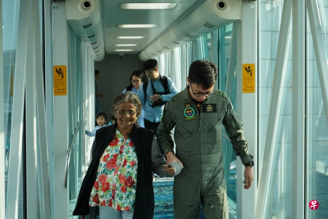 身穿武装部队空军制服的青年官兵,搀扶老妇人登上军机;年轻夫妇携带幼儿,一家大小在抵境国门笑吟吟地举起红色的新加坡护照……在中东地区战事持续之际,《联合早报》刊登的新闻照片,捕捉同胞在离家千里外的烽火地区,被军人安全带回国的一幕。