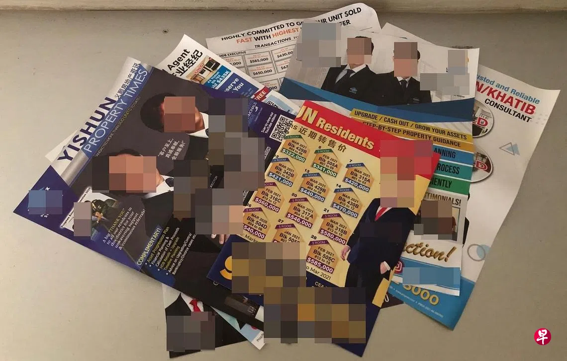 这个现象其实反映了组屋区长期存在的一个问题:商业传单泛滥,让居民不胜其烦,尤其是一些房屋买卖传单。