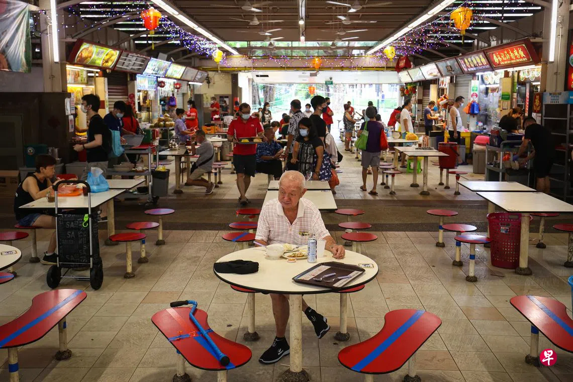 两个摊主的言语有些不留情面。其他食客都望向老人,可怜的他似乎觉得自己是过街老鼠,默默地离开小贩中心。