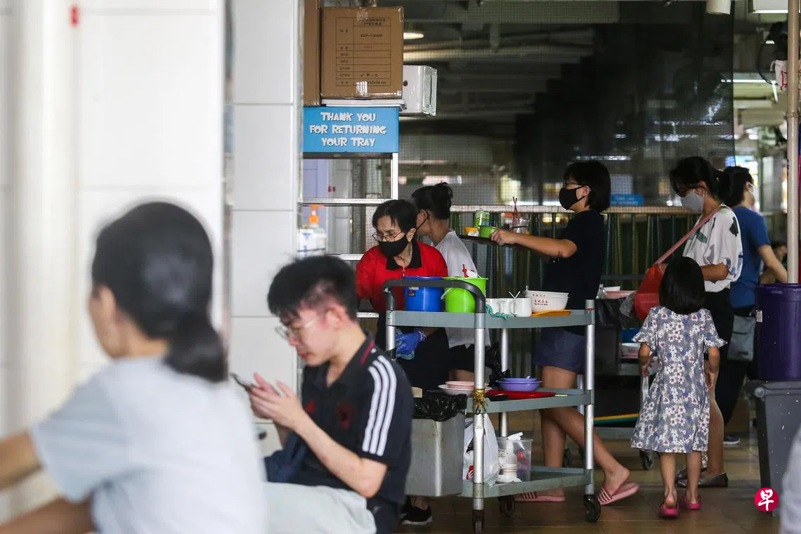 最近我和友人在麦士威熟食中心餐叙。虽然现在法律要求食客餐后把托盘和餐具放到架子上和清理桌面,清洁工人还是得从架子上把托盘和餐具集中回收到推车里,再辗转推到集中洗盘区,卸下满车的碗碟、餐具和厨余,让其他伙伴清洗。