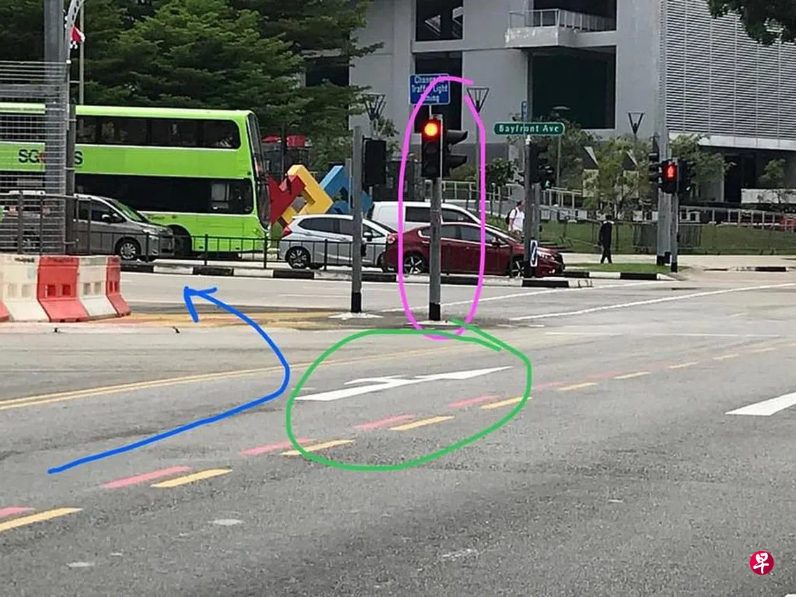 我是一名德士司机。9月13日早上11时30分左右,我载了两名乘客到滨海湾金沙。我从莱佛士道左转进入湾景道,到了滨海湾金沙酒店第一大楼前,交通灯转红停下,突然有交警来到车边,说我在莱佛士道转入湾景道时闯红灯,将被罚款400元和扣12分。
