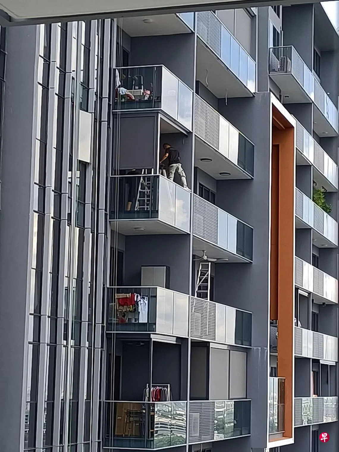9月21日在住家阳台上,我看到对面的公寓,一个工人在35楼的阳台上安装防雨防晒的遮帘,却没有做好防护措施,身上没有穿戴防坠落配备。如果他站不稳就会坠下楼,非常危险。他的雇主怎么可以如此罔顾工人的安全?