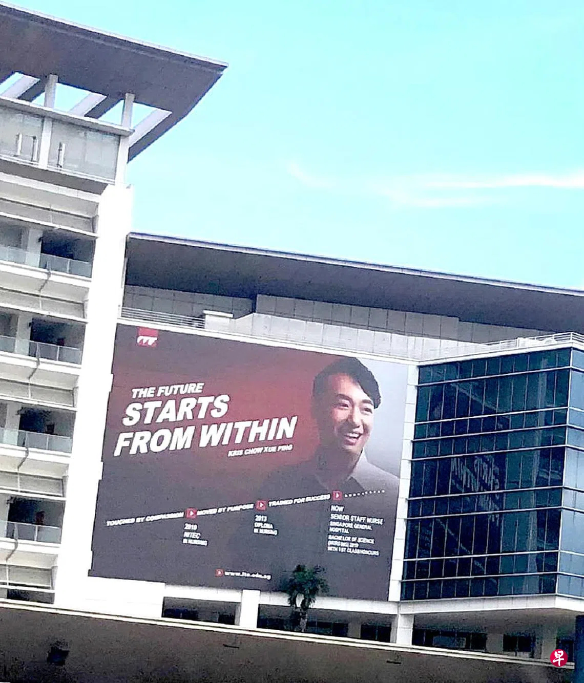 某个假日的大清早,我重回因疫情而阔别两年多的东区工艺教育学院运动场。在慢跑的当儿,抢眼的不是刚修补好的部分破损跑道,而是那幅高挂得平直工整的特大方形布条广告。布条挂在两座校舍的中间,面对东西地铁线,非常引人注目。