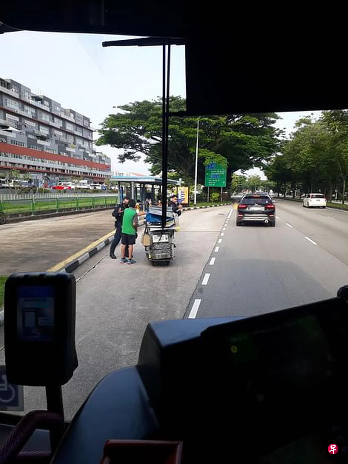 当时巴士快要到站,若要进站让乘客下车,就必须靠左,而小推车已推到车站,场面相当危险。