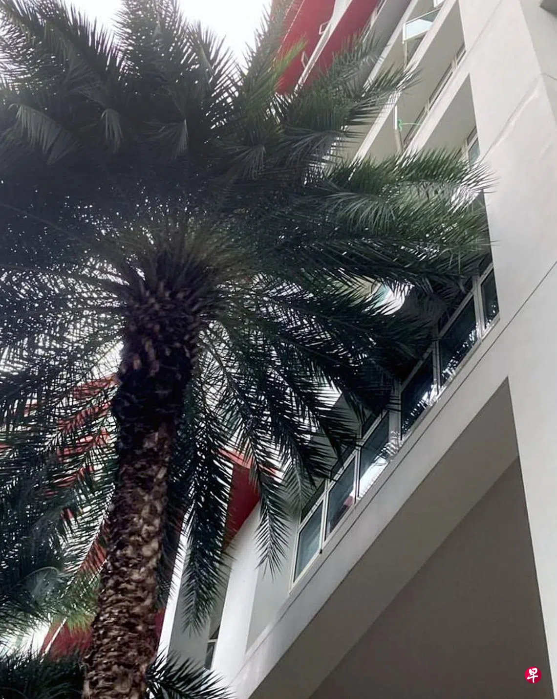 据住在盛港康埔桦通道第212B座组屋低层的居民反映,组屋楼下种植几棵棕榈树在长成后,因为太靠近组屋外墙,枝叶直接挨着他们的客厅及卧室,浓密茂盛的枝叶几乎延伸入屋里,不只遮挡了光线和居民的视线,还经常招来一些昆虫和蚂蚁。