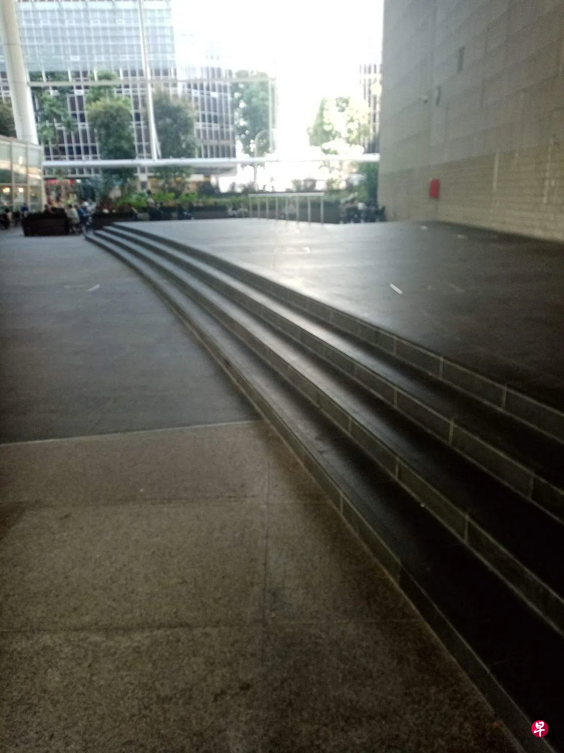 交流站:国家图书馆户外舞台梯级应有警示线为免公众不察失足,户外舞台梯级应有警示线。 (读者提供)4月26日下午,我约了友人到国家图书馆外的一家小餐馆闲聊。期间友人要上洗手间,必须走过餐馆和国家图书馆之间的一个户外小舞台。他一时没有留意到舞台的梯级,结果摔了个四脚朝天。我建议国家图书馆为户外舞台的梯级,加上黄色的警示线或喷上黄色的漆,以引起人们的注意,减少意外的发生。 国家图书馆意外上一篇交流站:如何提高德士服务水平下一篇站长的话购买此文章