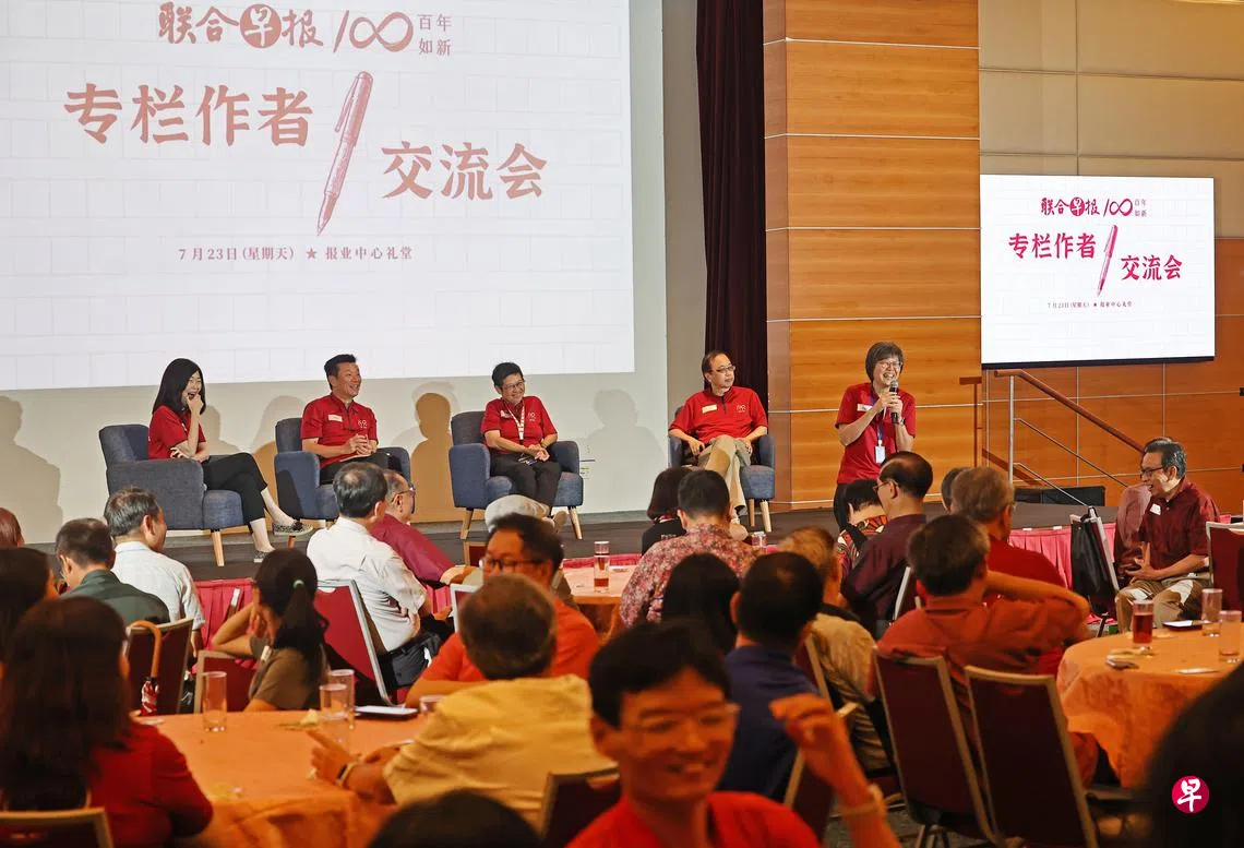今年是《联合早报》的百年报庆。《联合早报》是由1923年创刊的《南洋商报》和1929年创刊的《星洲日报》在1983年合并而成的。为庆祝早报创刊百年而展开的一系列庆祝活动之一的“专栏作者交流会”于7月23日举办了一场午餐交流会,邀请副刊、言论组的外稿作者们相聚,互动交流。