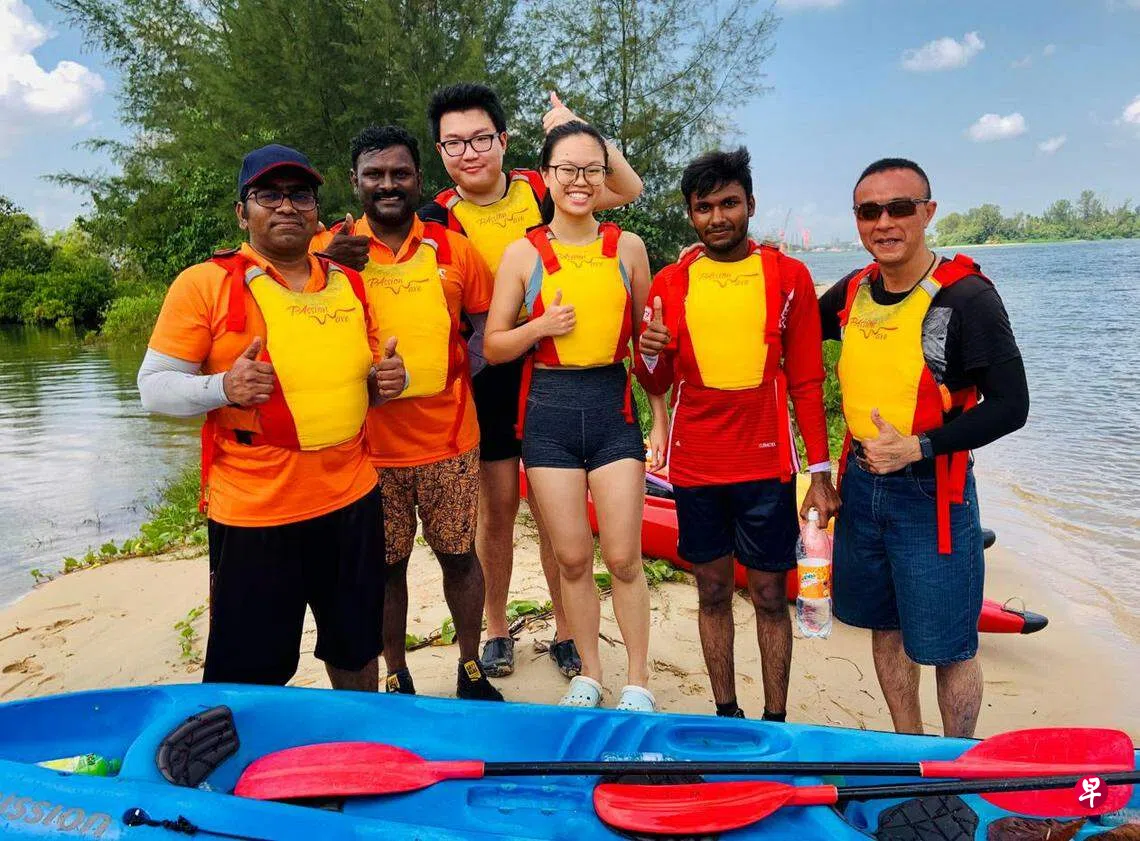 我是亚历山大医院的护士,上星期六(8月5日)我们全家和一些邻居与朋友,跟外籍劳工中心(Migrant Workers Centre)合作,邀请一群客工与我们一起到新邦河原始红树林(Sungei Simpang Mangroves)划皮艇,伴随着令人着迷的蝉鸣声,以不同的形式提早庆祝国庆日。这项活动是由德能邻里委员会(Dunearn Neighbourhood Committee)和德能青年团(Dunearn Youth)联办的社区服务计划,我是青年团的发起人。
