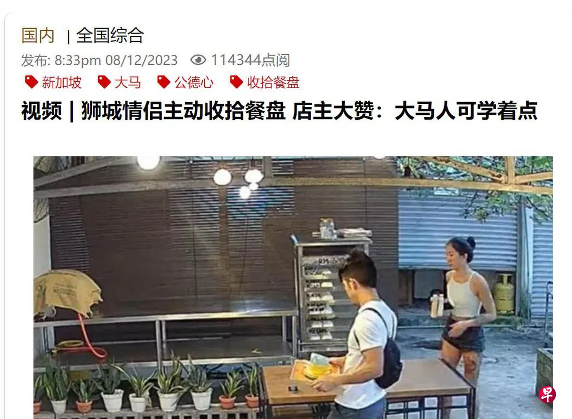 近日我在马来西亚《星洲日报》读到一则报道,内容是关于一对相信是来自新加坡的情侣,在马来西亚用餐后主动清理桌面,把碗盘收拾干净递给柜台,甚至还帮忙清理背后的桌子,赢得店主和当地网民一片赞赏。
