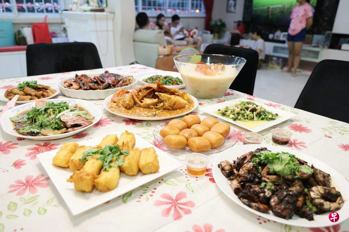 母亲觉得这失去了一家团圆的意义,况且餐费比平时贵多了。她于是决定,改在老家准备改良式的团圆饭,由小妹负责联络自助餐供应商,安排在除夕傍晚提供新年套餐。我们四代同堂,大大小小40余人,都挤在四房式组屋大厅,大家一面吃,一面高谈阔论。